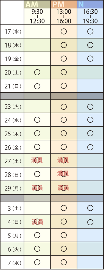 ・欠席は振替不可です。